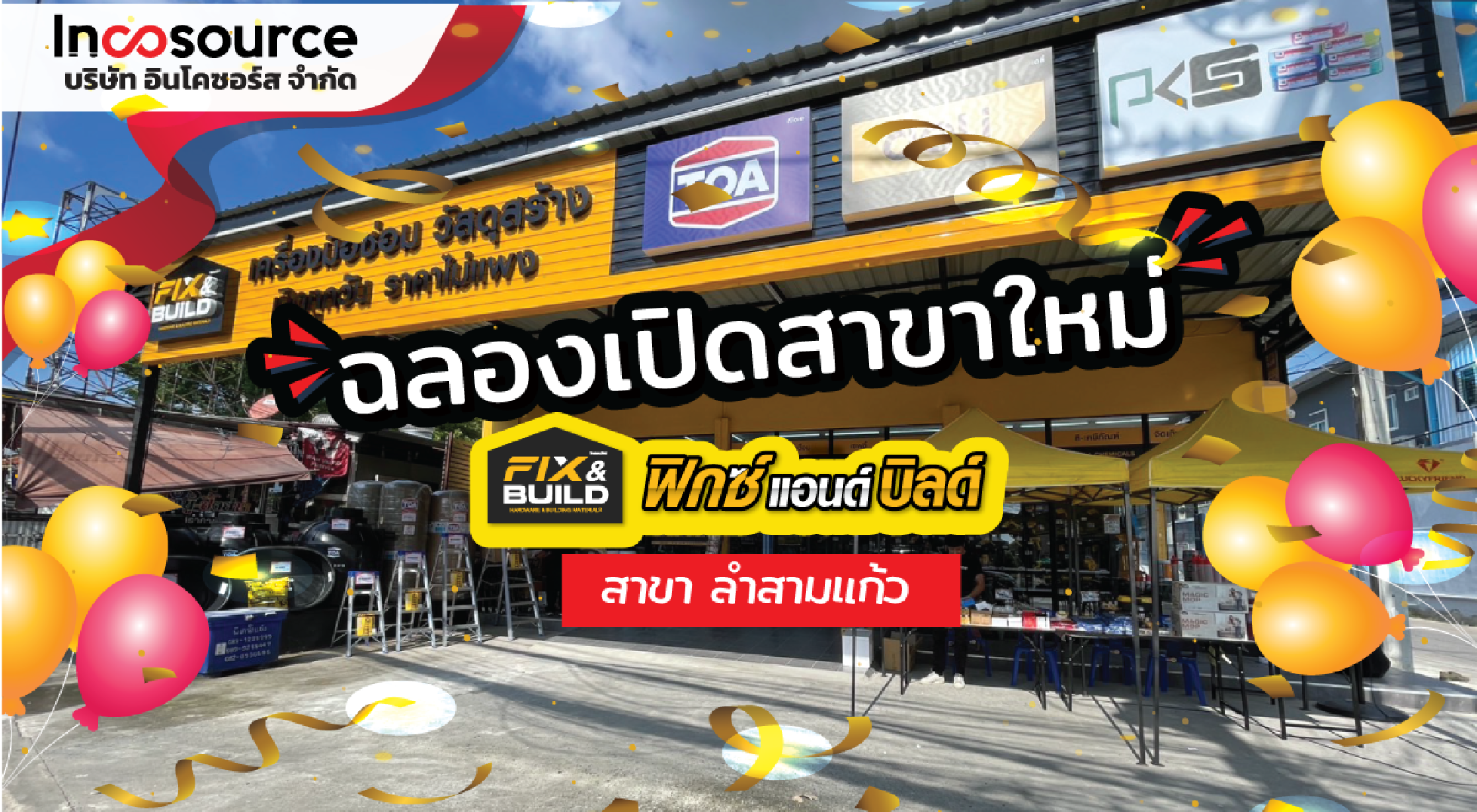 ร้าน ฟิกซ์ แอนด์ บิลด์ สาขาลำสามแก้ว ฉลองเปิดสาขาใหม่ พบโปรโมชั่นส่วนลดพิเศษและของแถมมากมาย