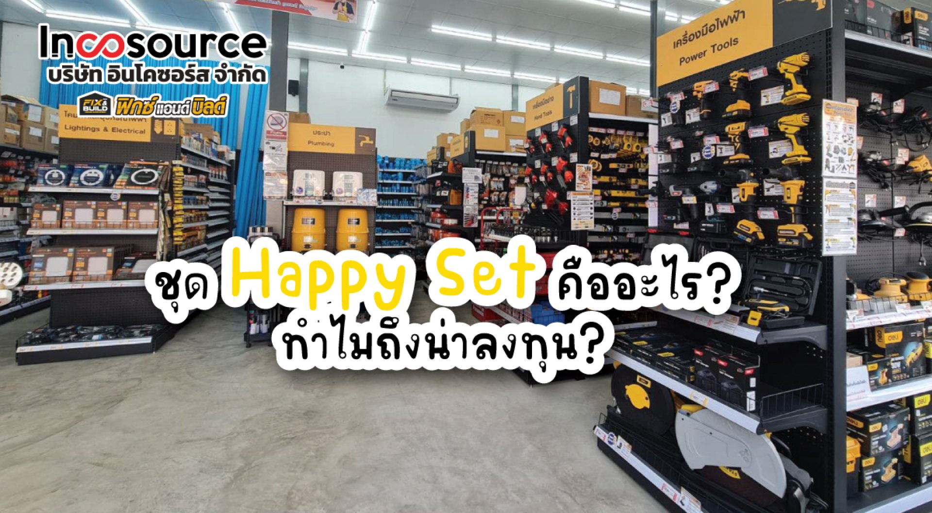 ชุด Happy Set   คือ ชุดเซตสินค้า ที่ บริษัท อินโคซอร์ส จำกัด ทำการจัดเป็นเซ็ตๆ ตามประเภท ให้เหมาะกับการลงทุน ซึ่งไม่ได้มีเพียงแค่เครื่องมือช่างเท่านั้น ยังมีเซ็ตอุปกรณ์ทำความสะอาด อุปกรณ์ห้องน้ำ งานช่างไฟ ช่างทาสี งานประปา แม้กระทั่งอุปกรณ์เครื่องใช้ไฟฟ้าสำหรับงานครัว จัดรวมให้อยู่เป็นเซ็ตๆ  เพื่อลดความยุ่งยากในการเลือกซื้อเครื่องมือแยกชิ้น  โดยสินค้าแต่ละชิ้นในเซ็ต ทางเราได้คัดสรรแล้วว่าขายง่ายกำไรดีแน่นอน  เหมาะสำหรับผู้ต้องการทำธุรกิจ หรือแม้กระทั้งเป็นรายได้เสริม ไม่ว่าจะเป็น บรรดาพี่ช่างมืออาชีพ เจ้าของบ้าน ร้านค้า นักเรียนนักศึกษา พนักงานบริษัท ร้านจำหน่ายเครื่องมือช่าง