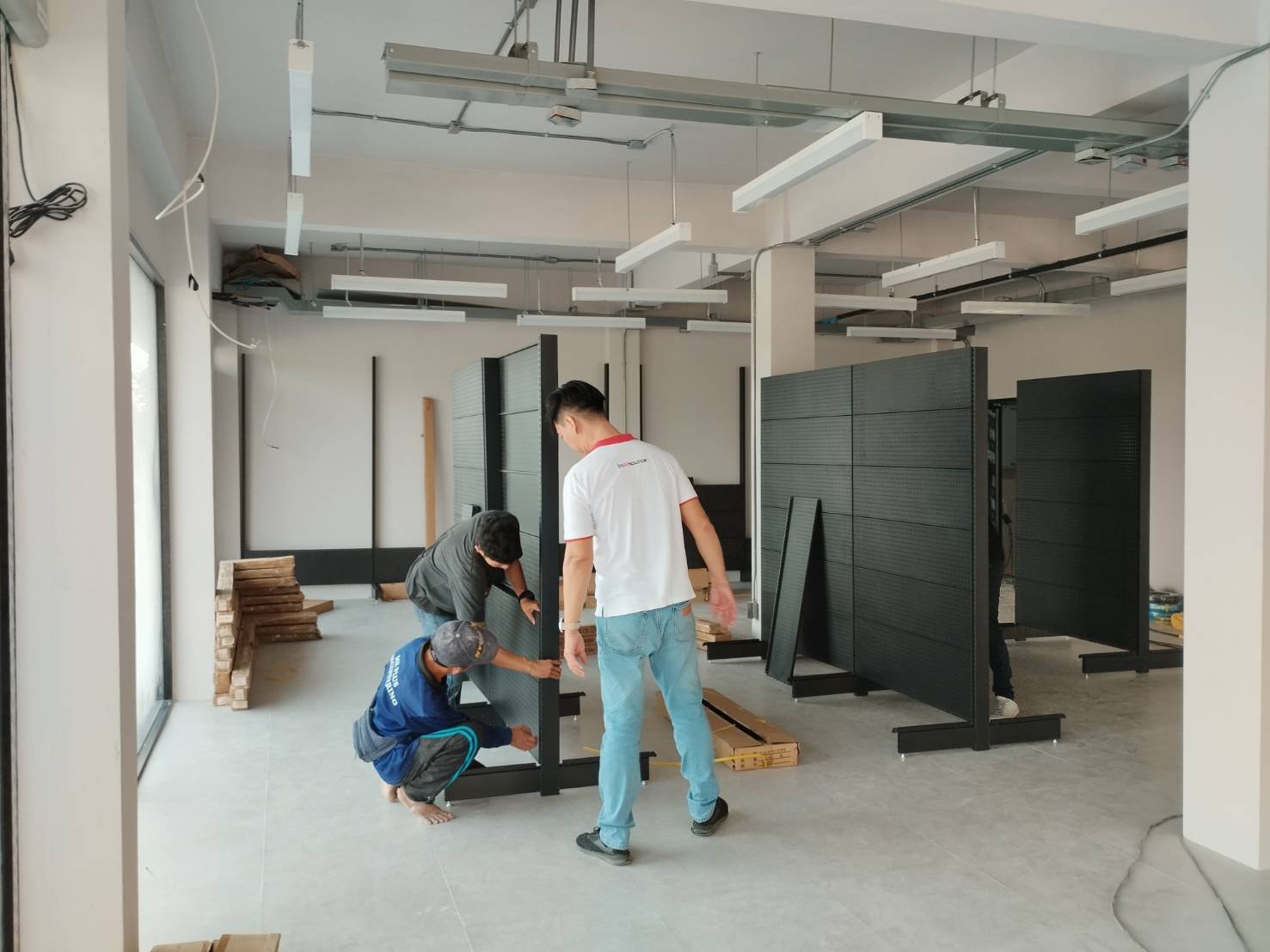 โดยทีมงานได้ทำการเข้า ติดตั้งชั้นวางสินค้า และ อุปกรณ์ ที่หน้างาน